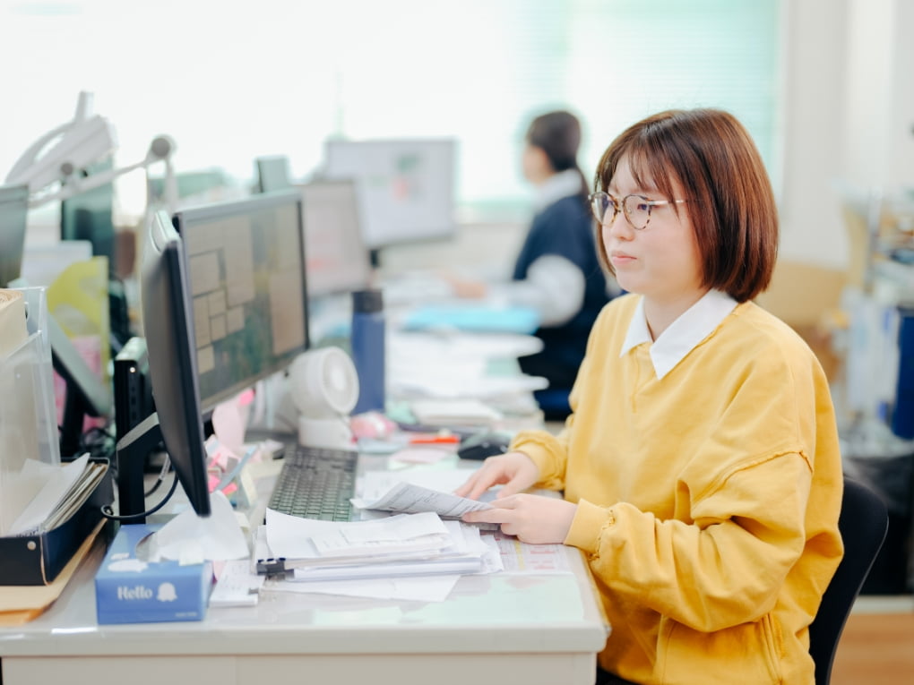 会社全体を支える事務全般を担当。受注対応や原価・資材管理から、総務・経理業務まで幅広く行います。会社全体の縁の下の力持ちとしてお客様や従業員の支えとなる役割を担います。