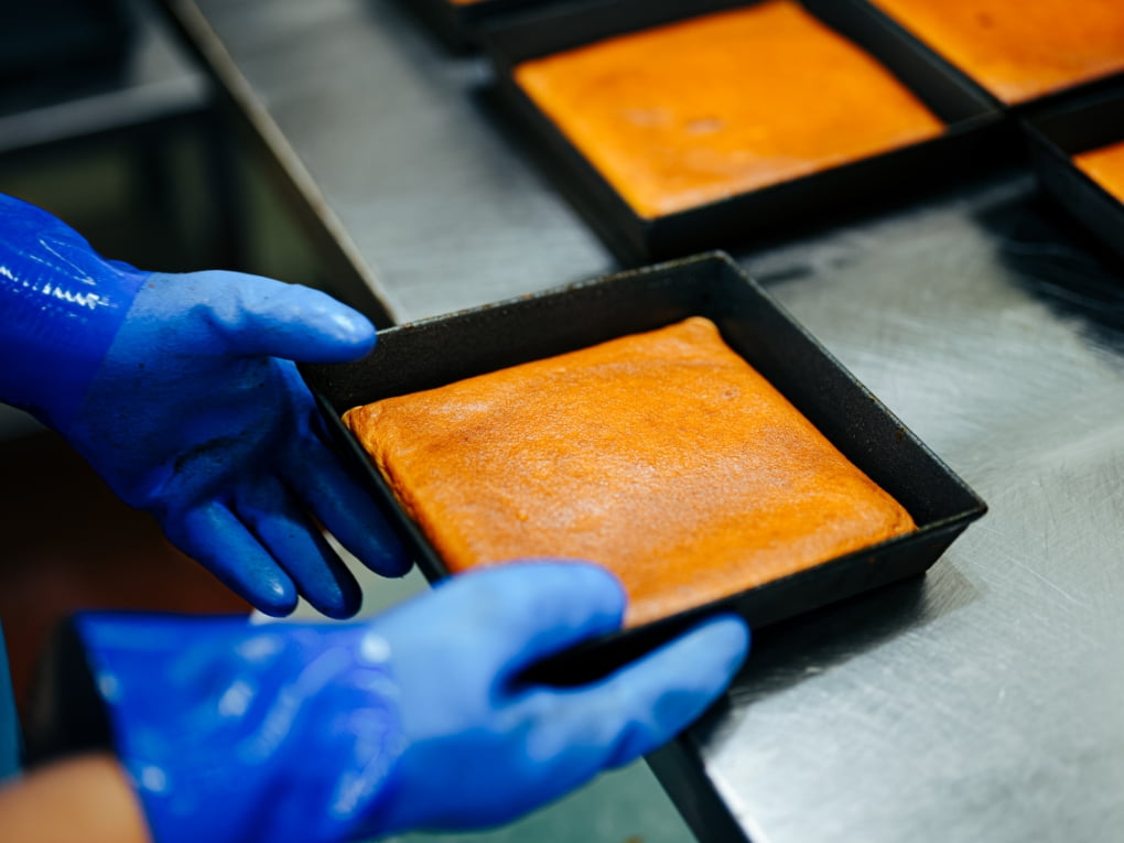 生地を焼き上げる“手”