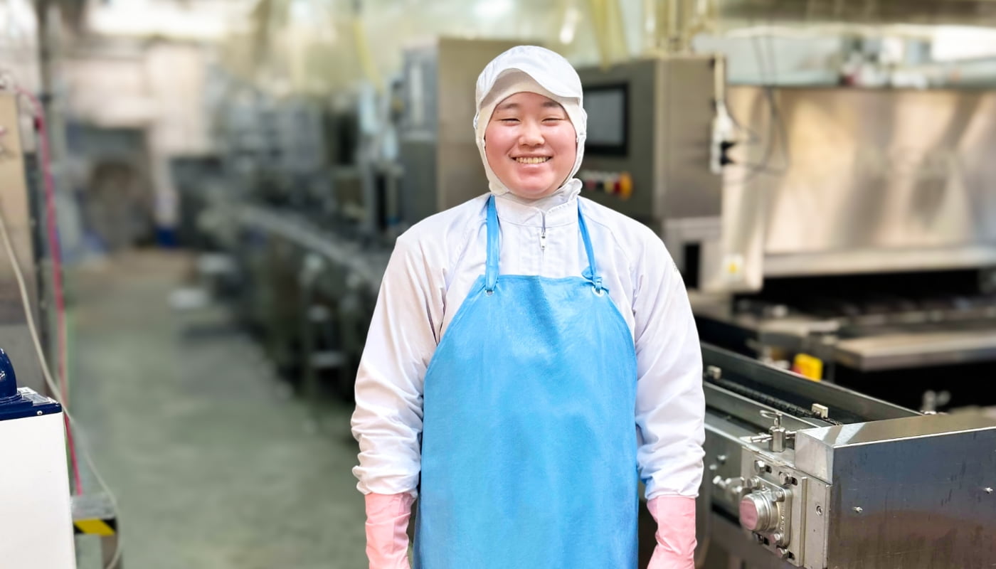 伊達巻を1本1本手作業で焼くということに興味を持ち、その丁寧なものづくりに惹かれ、自分の手で仕上げる仕事に挑戦してみたいと思い、入社を決めました。